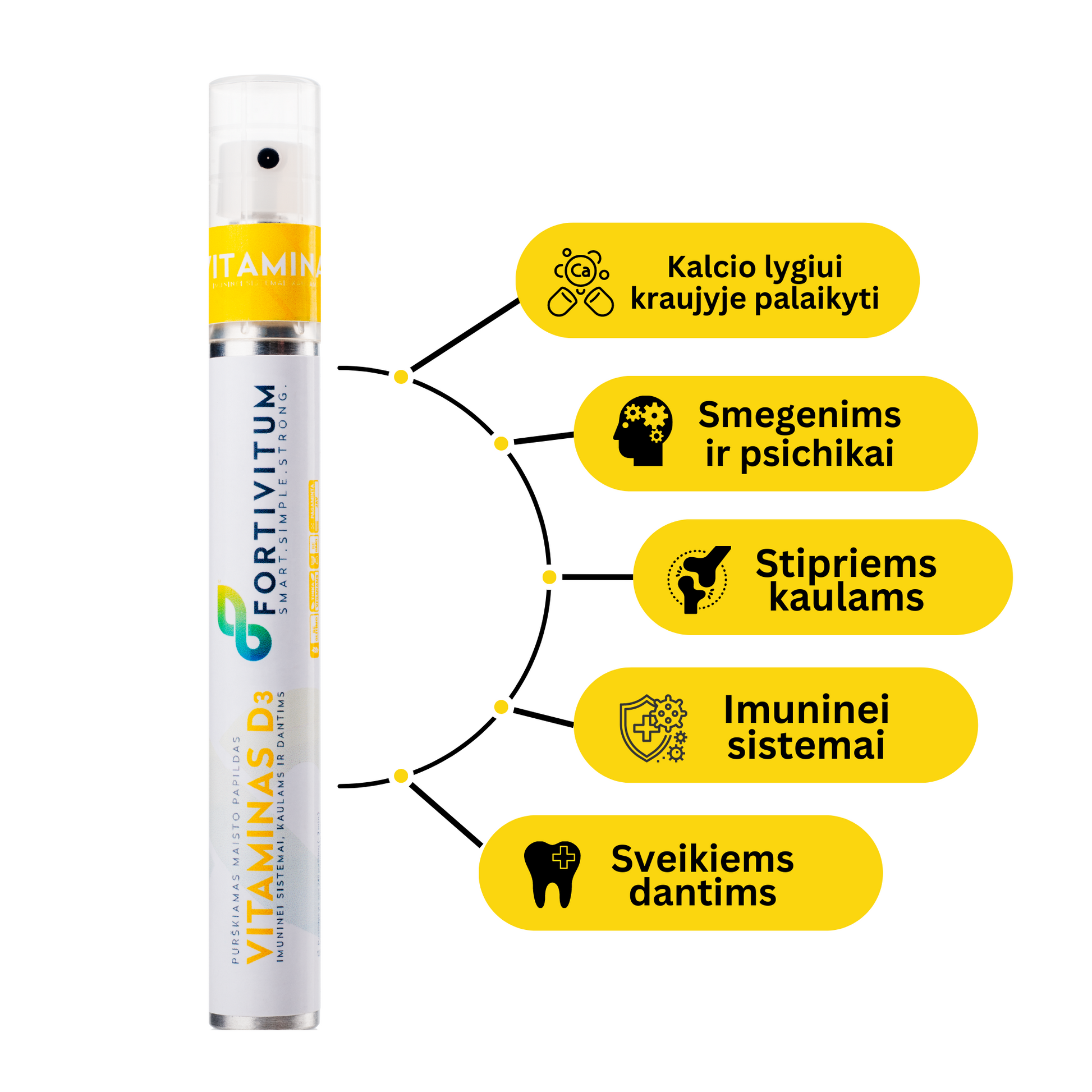 ✔️ Imuninės sistemos veiklą (taip pat ir vaikams) ✔️ Kalcio ir fosforo pasisavinimą/panaudojimą ✔️ Normalią kaulų, raumenų ir dantų būklę ✔️ Kalcio kiekį kraujyje ✔️ Ląstelių dalijimosi procesus ✔️ Vaikų kaulų augimą ir vystymąsi ✔️ Vyresnio amžiaus žmonėms – mažina griuvimų riziką