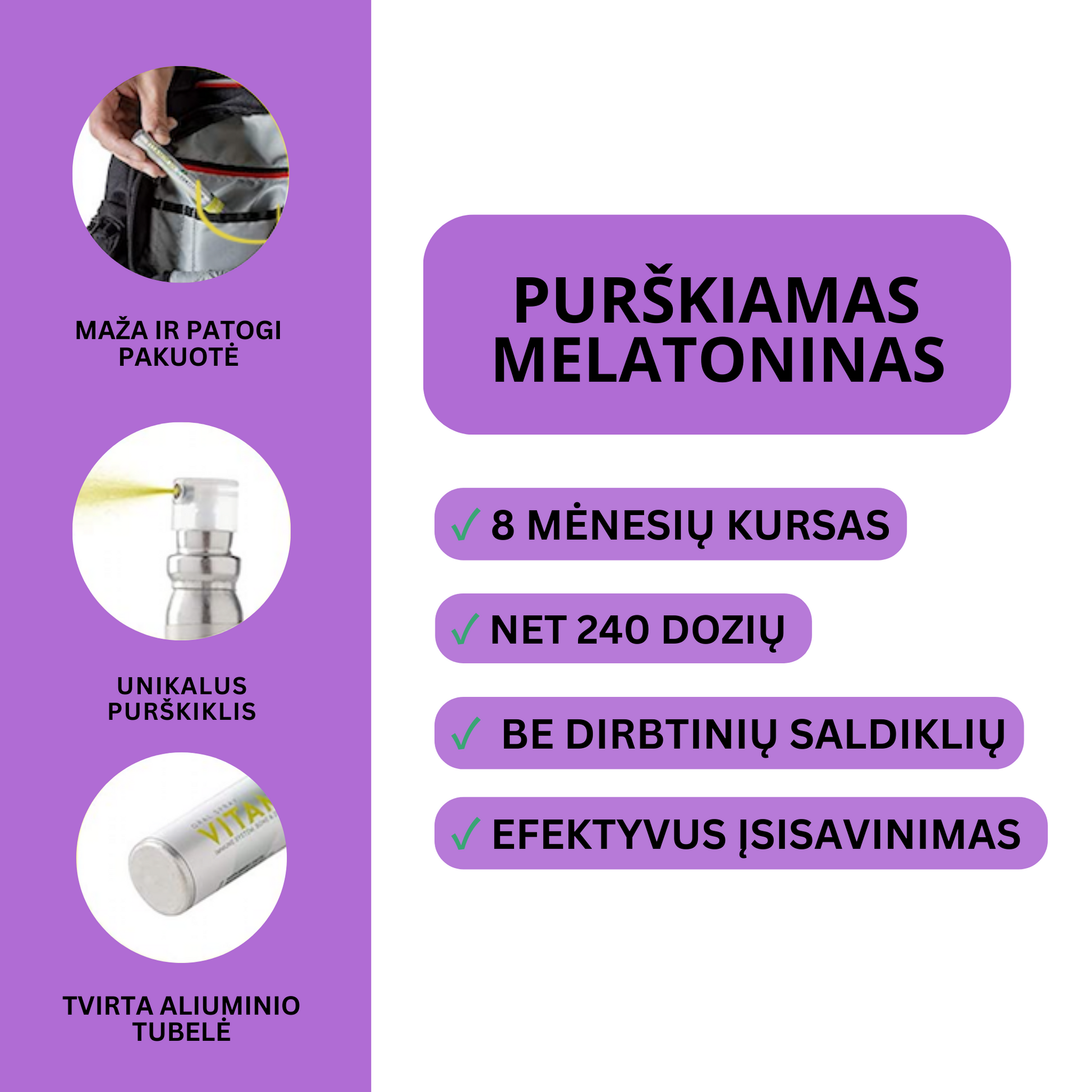 ✔️ Melatoninas – padeda sutrumpinti užmigimo laiką